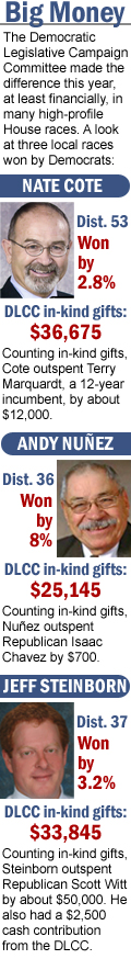 The DLCC raised just over $597,000 during the 2006 election cycle and spent just over $528,000, most of it on political consultants and mailers. The committee, whose focus is electing Democratic legislators, put money into 16 high-profile House races in 2006.