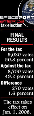 The tax taxes effect on Jan. 1, 2008. None of the money that’s collected can be spent until the state signs a lease with Virgin Galactic and obtains a commercial spaceport license from the Federal Aviation Administration.