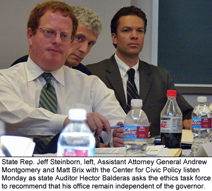 State Auditor Hector Balderas urged the Task Force on Ethics Reform during a meeting Monday in Socorro to recommend that his office remain independent of the governor.