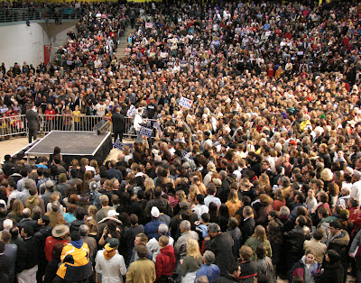 Here’s a view of what’s happening inside the event. We’re still waiting for Obama: