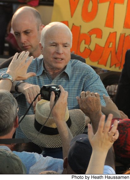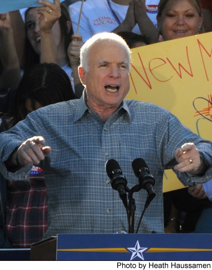 “There’s 10 days to go and we’re a few points down (in the polls). Pundits have written off the race,” McCain told a rowdy crowd of about 4,000 on the plaza in Mesilla. “… I’ve never been one to back down when the stakes are high.”