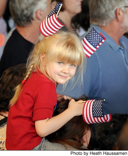The sun beat down as the crowd overflowed onto the runway outside the hangar, and several people fainted in the heat as they waited hours for Palin to arrive. Despite that, the crowd was loud and energetic during Palin’s speech.
