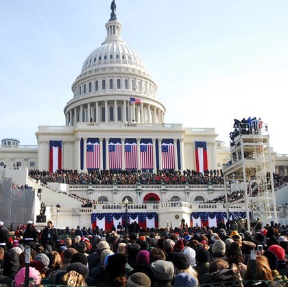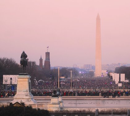 Yesterday, when I blogged about the excitement of the high school kids I met from Deming, I never could have imagined how magnified that feeling would be today. Throughout the morning, the crowds were full of excitement and hope. Although it was bitterly cold and the long lines were unending, people stayed upbeat, patient and enthusiastic. When I took my seat near where Barack Obama would soon be sworn in as our next president, I could see that the crowd filled up the entire National Mall — from the Capitol all the way to the Washington Monument.