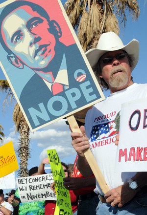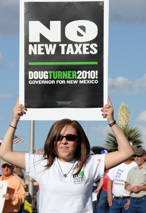 And though this year’s event was probably about as well attended as last year’s tax-day protest, today’s event fell far short of the 1,200-1,400 who attended a tea party rally in Las Cruces in September.