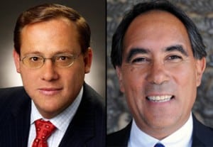 Democratic Lt. Gov. candidates Brian Colón (courtesy photo), left, and Lawrence Rael (photo by Heath Haussamen).